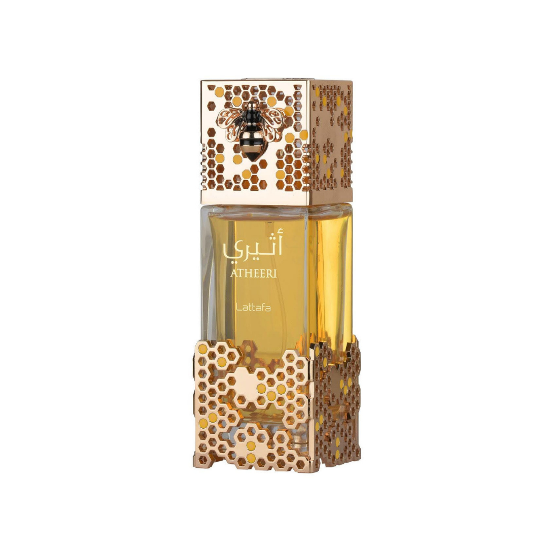 Atheeri es una fragancia floral gourmand, suave y etérea, para todos los gustos, de la casa Lattafa. Captura la esencia de la dorada luz del sol filtrándose en un jardín sereno, donde la frescura del rocío matutino se funde con la embriagadora dulzura de la pasionaria. En su corazón, un delicado bouquet de orquídea y jazmín evoca una sensación de elegancia atemporal.